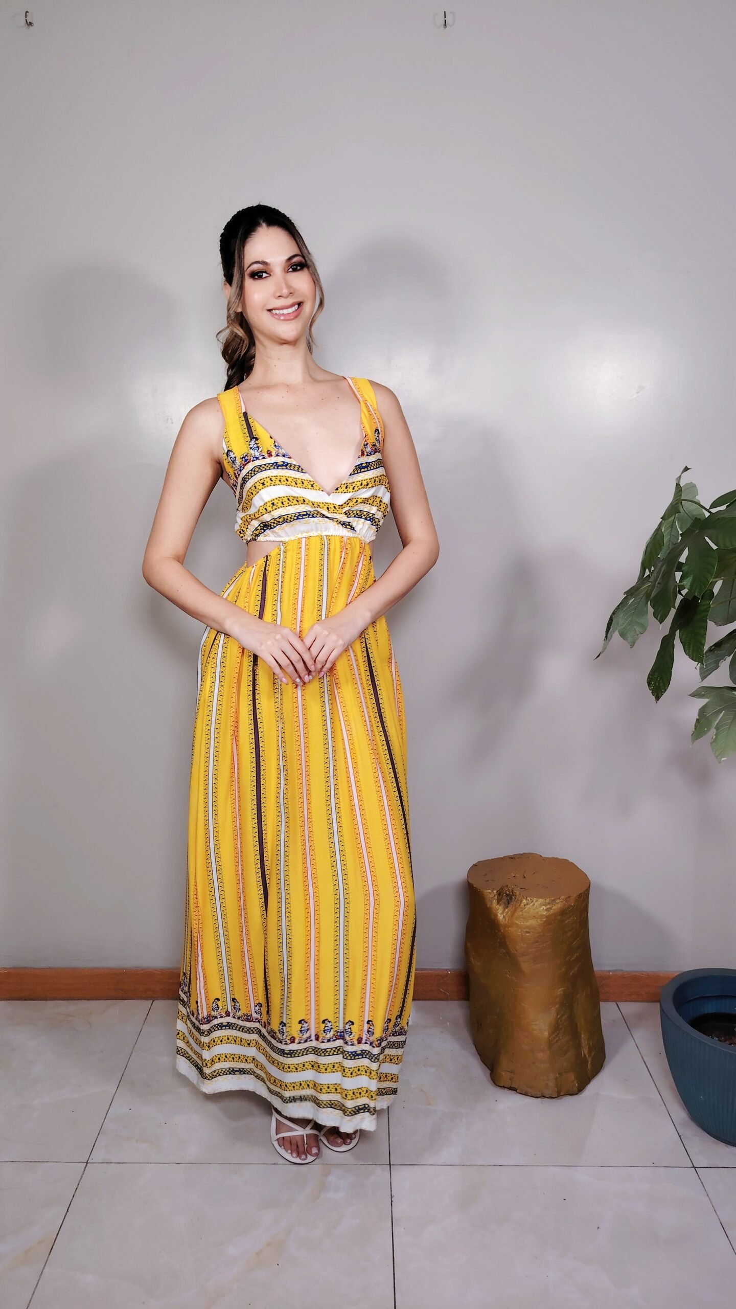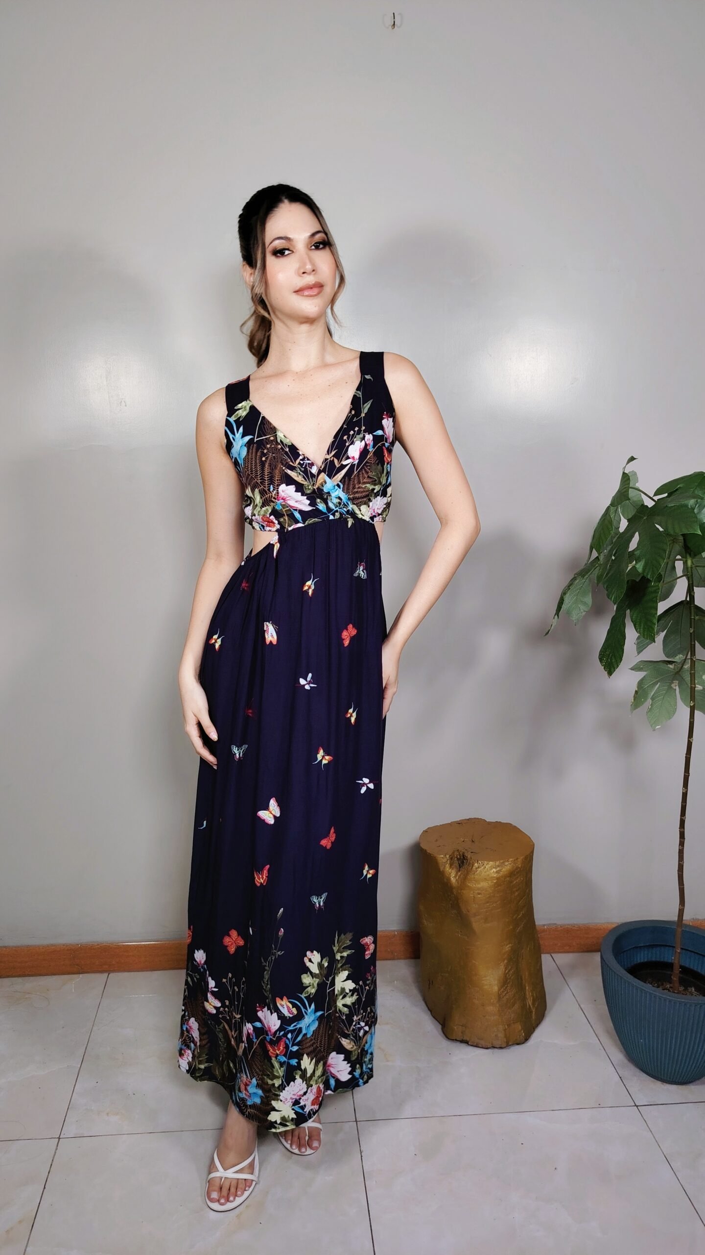 Con un diseño pensado para resaltar lo mejor de ti, este vestido combina un escote cruzado en V con tiritantes anchos y un corte cut-out que define la figura sin perder comodidad.